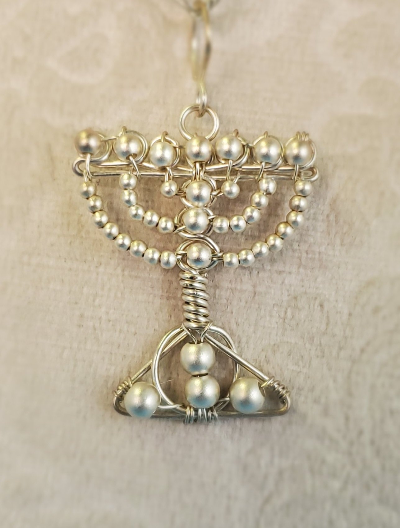 This Incredible 925 Sterling silver small menorah is handcrafted with 925 Sterling silver beads of different sizes and 925 Sterling silver wire.